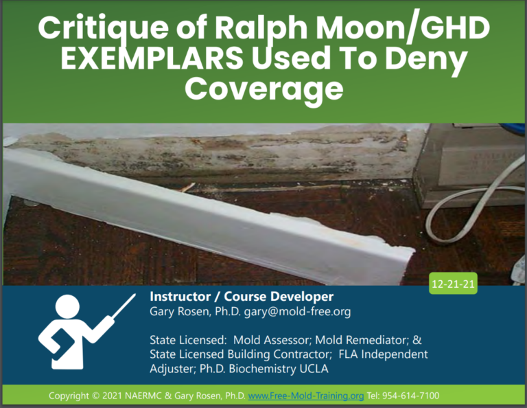 - We show attorneys and PAs how to successfully rebut ALL of Ralph Moon’s arguments where he uses proprietary mold, rust and cabinet swell studies/exemplars to deny coverage.